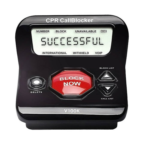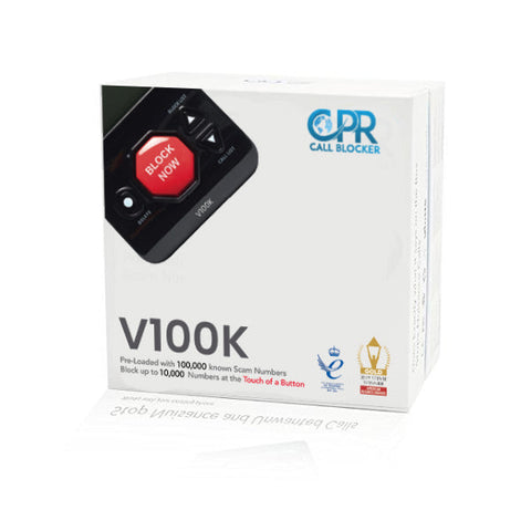 CPR Call Blocker V100K for landline phones has been preloaded with 100,000 known scam / nuisance numbers reported to the FCC. This can significantly reduce robocalls, scam calls, political calls, election calls and general nuisance calls once the call blocker is connected.
